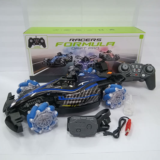 Remote control toy car F1 racing style, with music and light, the tail can be spray.